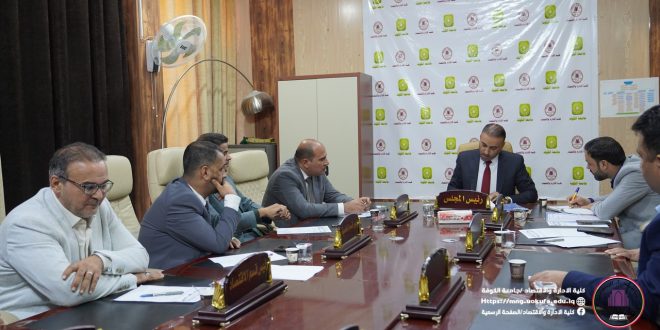 عقد مجلس كلية الإدارة والاقتصاد في جامعة الكوفة جلسته الاعتيادية برئاسة عميد الكلية الأستاذ الدكتور حيدر جاسم الجبوري، حيث جرى خلال الاجتماع مناقشة عدد من القضايا المدرجة على جدول الأعمال.